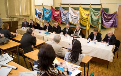 Первый вопрос прозвучал от председателя городского комитета образования Н.Рыбниковой: что ожидает университет от руководства школ? Ректор НовГУ В.Вебер, выступивший с презентацией университета, ответил четко: совместной с НовГУ профориентационной работы, направленной на то, чтобы выпускники Новгорода учились здесь, оставались здесь, развивая наш город. Кстати, его поддержал председатель областного комитета образования, науки и молодежной политики В.Аверкин, сказав, что не стоит гордиться тем, что выпускники всем классом уехали учиться в столицу - практически никто из них не вернется домой!