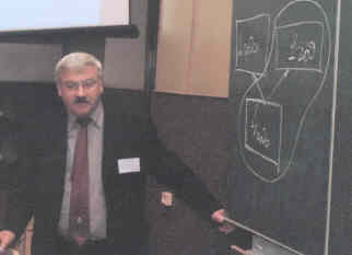 Подробно обсуждались проблемы и трудности введения специальности бакалавра и мастера в рамках современного стандарта образования, преимущества и недостатки различных моделей. В новых технологиях образования были представлены доклады о дистанционном образовании в университете Готланда, НовГУ, университете Падерборна (виртуальные лекции). Кстати, опыт Готланда достоин внимания: там самый большой процент студентов, получающих дистанционное образование, по сравнению со всеми университетами в Швеции, там 90 дистанционных курсов. Всё это вылилось в решение по модели для Новгородского университета, разработку концепции дистанционного образования, обсуждение технических потребностей для дистанционного образования в НовГУ.