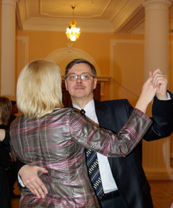 Между тем, возвращение к истокам шло своим чередом. И если на полонез, открывающий бал, большинство танцующих встали с испуганными лицами (как бы чего не напутать!), то после нескольких туров венского вальса осмелели. И на паркете легко запорхали пары, подбадриваемые танцорами-профессионалами. Причём ректорат ничуть не отставал от студентов, а может даже и вырывался вперёд: в вальсе лихо кружился проректор по учебной работе Сергей Владимирович Гудилов, не отставал от него Рудольф Николаевич Шабалин, начальник управления аспирантуры и послевузовской подготовки, сопровождавший на бал свою внучку.