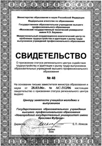 Для нас, новгородцев, самым главным моментом семинара было торжественное вручение Свидетельства о присвоении нам статуса регионального центра.