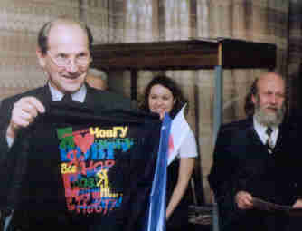 В этом году он был как никогда тематически насыщенным и многолюдным. Отличие было и в том, что в подготовке и проведении праздника активно участвовали наши студенты-журналисты. Праздник традиционно вел преподаватель отделения журналистики, он же художественный руководитель ТОО "Университет" С.Б. Пухачев (см. фото в центре слева напрво: М.А. Хусаинов, С.Б. Пухачев и В.Е. Гантмахер). Помогала ему Евгения Симакова, студентка V курса отделения журналистики, редактор "Молодого канала". Номинантов "Свечи Ярослава" в этом году было четверо.
