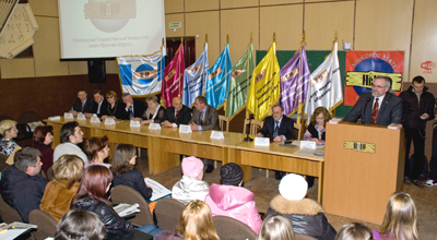 Всех пришедших сначала собрали в III поточной аудитории основного здания. Ректор университета В.Р. Вебер, начальник довузовской подготовки Ф.А. Груздев и все директора институтов НовГУ приветствовали абитуриентов и их родителей, отвечали на вопросы.