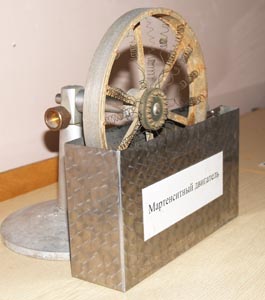 А еще на выставке была представлена научная, научно-исследовательская и учебная работа кафедры, показаны макеты, изготовленные руками студентов, - мартенситный двигатель (на фото), модель атома и пр. |