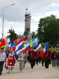 Яркая деталь в мозаике праздника - фестиваль уличных театров, в котором принимали участие представители Швеции, Эстонии, Финляндии и других делегаций. Постановка "Нить Ариадны" уличного театра "Фета" из Гданьска (Польша) поразила зрителей необычностью трактовки сюжета, использованием особых атрибутов, характерных для уличных представлений.