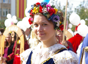 Праздник - это возможность максимально проявить себя и как волонтером, и как участником. Многие новгородцы, среди которых были наши универсанты, озаботились приготовлением специальных костюмов задолго до наступления Ганзейских Дней - результаты оказались оправданы. Так что не только гости были в своих национальных нарядах, но и наши студенты радовали ганзейцев яркими одеждами, такими, например, как у студентки ИМО (на фото).