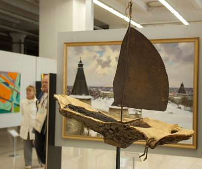 В Великом Новгороде это первая представительная выставка художников из Померании в России. 20 художников региона представили широкую палитру современного искусства: от академической живописи и графики до стеклокерамики, металлодизайна, художественного ткачества и росписи по шелку. Среди участников молодые художники и мэтр жанра Хельмут Малетцке. Интересно, что среди "поморцев" есть выходцы из России - Надя Клютер, Камо Маргарян и Елена Чулакова.