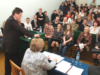 На встречу пришли студенты со второго по пятый курс различных специальностей: агрономы, технологи, зоотехники, механизаторы. От руководства НовГУ были глава ИСХПР А.М. Козина, президент НовГУ А.Л. Гавриков, представители компаний ЗАО "Гвардеец", ООО "Новгородский бекон" и многие другие потенциальные работодатели.