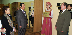 Во время открытия Центра Генеральный консул Республики Корея в Петербурге господин Чой Дже-кын (на фото в центре) передал в его ведение компьютерное оборудование, телевизор, видеоплеер, учебно-методическую и справочную литературу, предметы корейского быта и культуры.