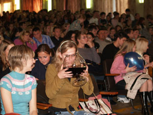 Собственно само посвящение традиционно состояло из торжественной клятвы студента, окропления водой и глотка вина из огромного бокала, пущенного по залу. |