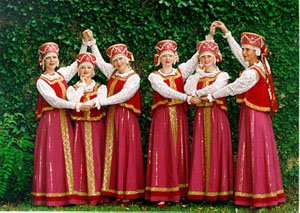 - Поскольку подбор нового материала и аранжировка занимают немало времени, - говорит Михаил Петрович, - стараемся делать вещи "на века". Так, у нас есть номер еще с 1974 года, он всегда идет "на ура" и нисколько не потерял яркости и свежести. В его основе - две песни Новгородской губернии: "Как на нашей на сторонке хорош хмель родился" и "У Катюши - муж гуляка". По сюжету Катерина застает суженого на гулянье с другими девушками и устраивает ему "яркую" встречу. Однако все, по русской традиции, заканчивается хорошо, и в заключение участники исполняют задорный русский перепляс. Вот так, путем использования трех жанров (песен Новгородской области, музыкального и танцевального фольклора) получилась единая композиция, которую зритель воспринимает как динамичный мини-спектакль.