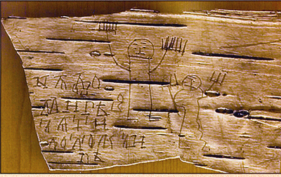 Онфим (народная версия греческого имени Анфимий) - новгородский мальчик XIII века, автор берестяных грамот и рисунков. Всего почерком Онфима написано 12 грамот. Кроме того, ему принадлежат несколько берестяных рисунков. Основная масса его грамот и рисунков найдена 13-14 июля 1956 года. |