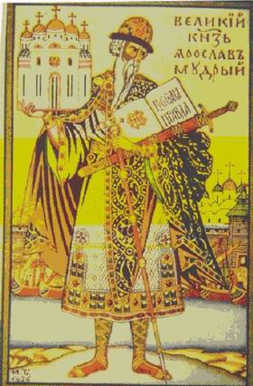 Первый раздел выставки отражает жизненный путь Ярослава Мудрого. В нем представлены миниатюры Радзивиловской летописи, портреты современников великого князя и участников событий его бурной жизни. Этот раздел отражает обширные международные связи Ярослава: заключенные им династические браки, военные и дипломатические союзы. В своеобразную портретную галерею вошли изображения самого Ярослава Мудрого, его военного противника польского короля Болеслава Храброго, дочери Болеслава Реглинды, тестя Ярослава - шведского короля Олафа Шётконунга, свояка великого русского князя - норвежского короля Олафа Святого, зятя Ярослава - французского короля Генриха I Капетинга и его жены Анны Ярославны, портреты других монархов средневековой Европы, связанных с семьей Ярослава Мудрого родственными узами. Размещены экспонаты, демонстрирующие созидательные усилия Ярослава в области просвещения, градостроения и культуры: создание в 1030 году школы и скриптория в Новгороде, начало строительства укрепительных сооружений Новгородского кремля и возведение в Новгороде собора св. Софии.