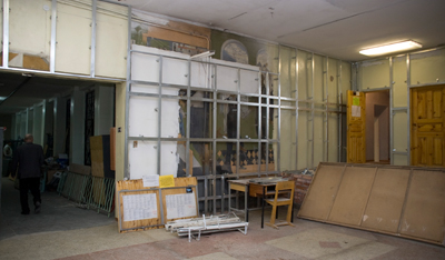 - Здесь все непросто. Во-первых, установленная в 70-е годы прошлого века декоративная штукатурка стала осыпаться, восстановить ее невозможно, если латать дыры - так латки и останутся, попасть же в мраморную крошку точно - невозможно. Во-вторых, мы видим только то, что отвалилось, но того, что отслоилось, гораздо больше. И этот процесс будет продолжаться.