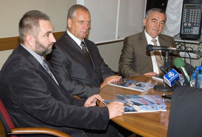 Его издание специально приурочено к 1150-летию Великого Новгорода. С журналистами встретились мэр Великого Новгорода Ю.И. Бобрышев, губернатор Новгородской области С.Г. Митин и главный редактор журнала Ю.А. Борисенок (на фото справа налево).