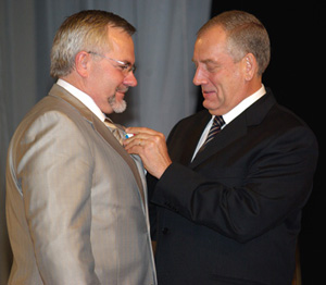Ректору НовГУ В.Р. Веберу губернатор области С.Г. Митин вручил юбилейную медаль к 1150-летию Великого Новгорода. Губернатору же ученые университета уже традиционно презентовали свои труды.
