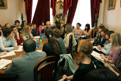 Очень полезным был представленный модератором материал, но ориентирован он был, конечно, на студентов, которые могли постичь многие тонкости организации и проведения конференций. Уже там возникла ключевая для меня проблема: теория и жизнь - принципы взаимодействия. На вопрос, какую роль для привлечения студентов к участию в конференции играет административный ресурс, студенты, искренне смутившись, сказали, что он имеет место быть, хотя теория предполагала обратное.