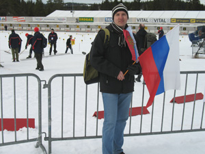 95% зрителей были местными, группировка россиян - человек 30, чуть меньше шведов и немцев. Был замечен один белорус, украинская пара и даже семья из Казахстана (подозреваю, что "местная"). Норвежцы в основном болели за своих. Но наши, несмотря на их численный перевес, своих подбадривали гораздо громче. Видимо, там не принято кричать "Уле!" (Бьорнаделен - ред.) или "Тора!" (Бергер - ред.), хотя в колокольчики звонили и слегка шумели. А вот наше "Оля! Оля! Максим!" разносилось довольно громко.