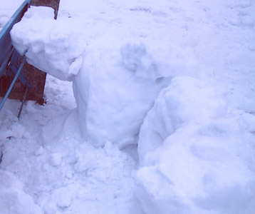 Только и успел редакционный фотограф запечатлеть в первый день самого творца, во второй, солнечный денек, - его творение. А к вечеру - что осталось от снеговой скульптуры.