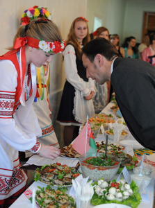 П.А. Петряков, заведующий кафедрой педагогики, технологии и ремесел ИНПО отметил, что уникальность нынешнего гастрономического этапа Недели в том, что его организуют и проводят не иностранные студенты, представлявшие прежде свои национальные блюда, а наши, университетские россияне. Зато набор блюд был в соответствии с неделей - интернациональным: на столах были яства из Украины, Белоруссии, Польши, Германии, Италии и Кореи. И, конечно, блины с икрой из России. Он отметил, что дегустация - это всего лишь красивая заключительная часть работы. А чтобы правильно и красочно приготовить, подать блюда, студентки полгода вели огромную научно-исследовательскую работу: изучали историю разных кухонь, шили национальные костюмы и вышивали скатерти - всё это входит в их обязательные умения по профессии.