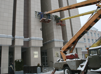Часы университет закупил в одной из московских фирм, которая учла пожелания новгородцев по многофункциональности и размерам: их длина почти 4 метра, и они отлично вписались в параметры здания. Чтобы их смонтировать, наши университетские мастера сварили специальную рамку, при её монтаже аккуратно сняли облицовку, - керамогранитные плитки навесного вентилируемого фасада, а потом поставили их точно на те же места.